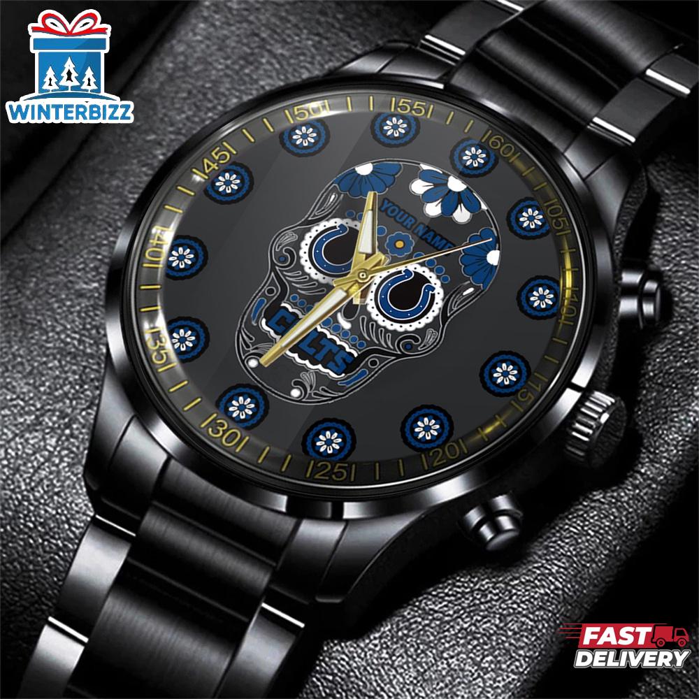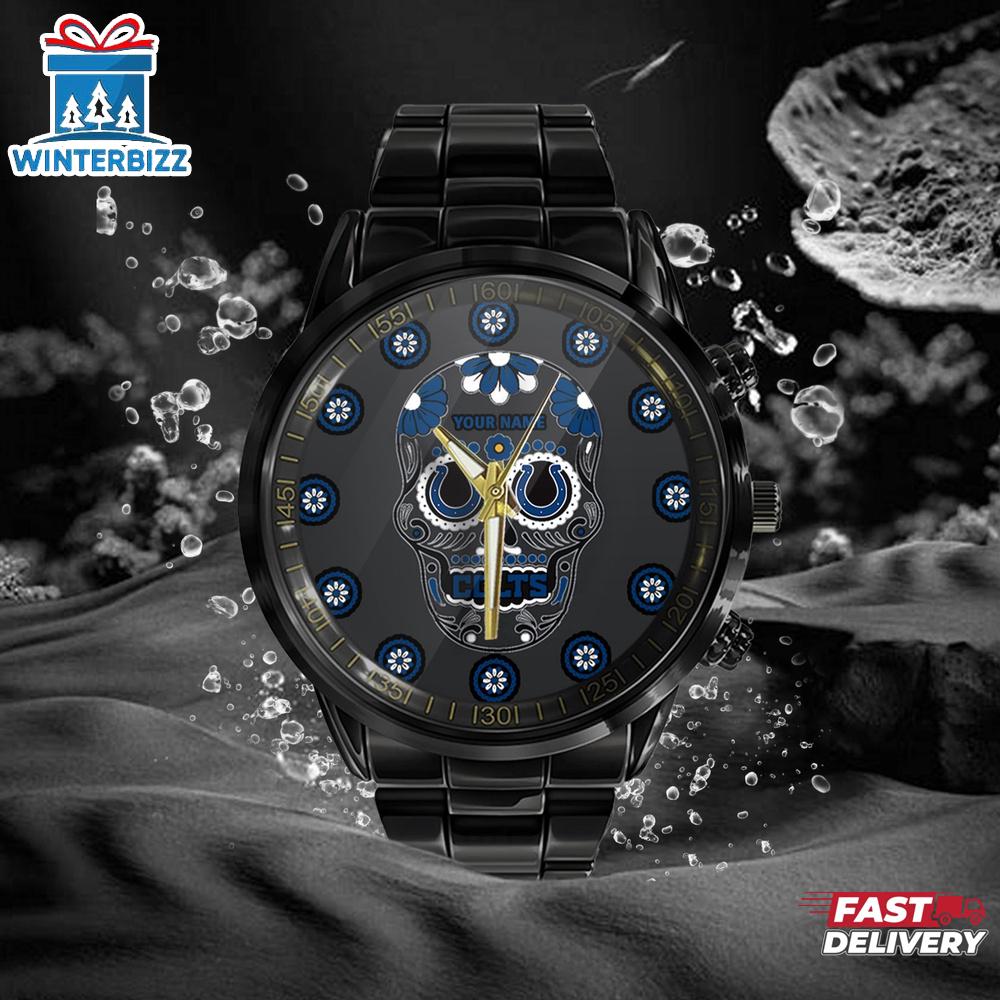 Product details: Custom Name Indianapolis Colts NFL Football Team Black Stainless Steel Watch Sport Watch Gift