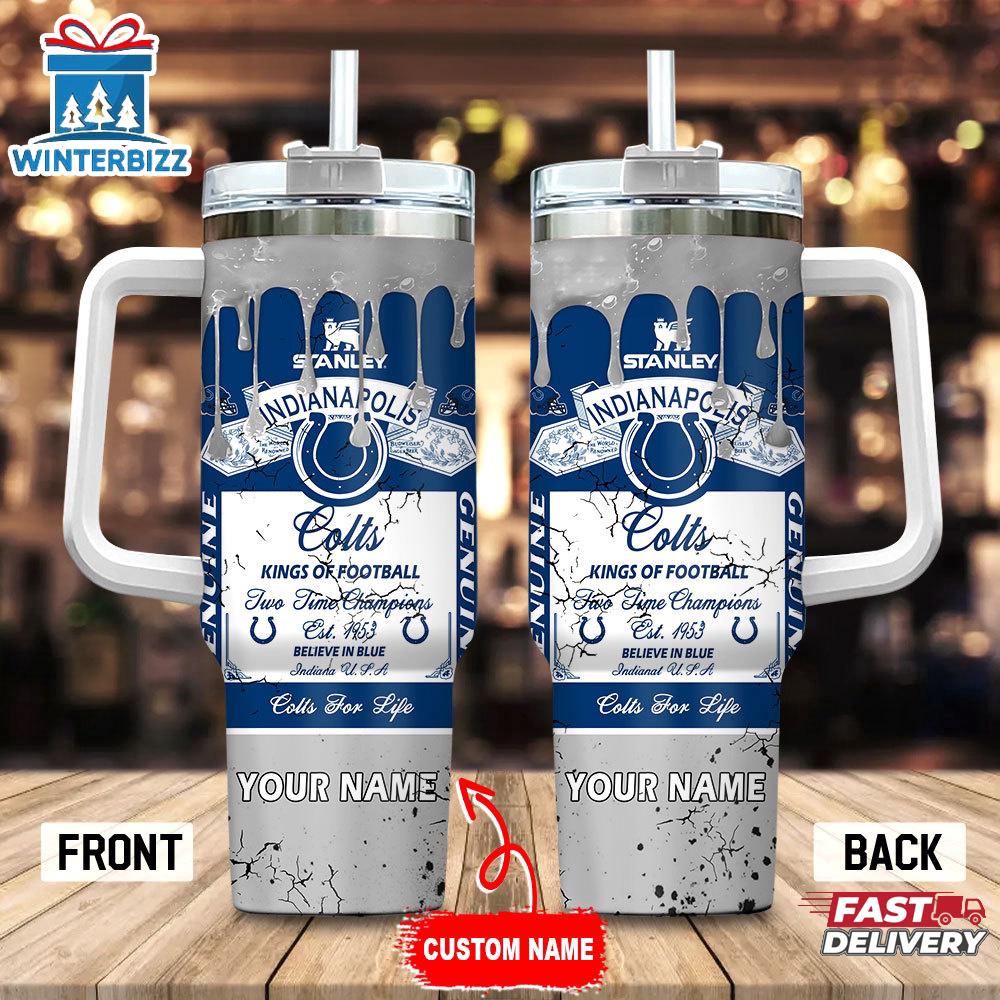 Photos Of Custom Name Indianapolis Colts NFL Kings Of Football Stainless Steel Tumbler 40Oz With Handle