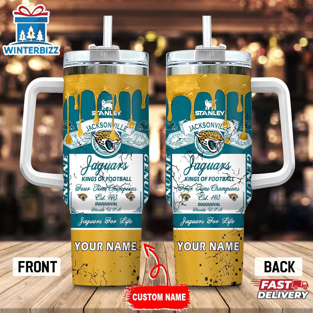 Photos Of Custom Name Jacksonville Jaguars NFL Kings Of Football Stainless Steel Tumbler 40Oz With Handle