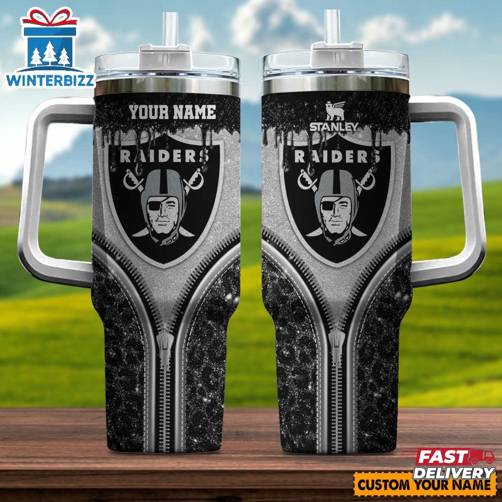 Photos Of Custom Name Las Vegas Raiders Leopard Stainless Steel Tumbler 40Oz With Handle