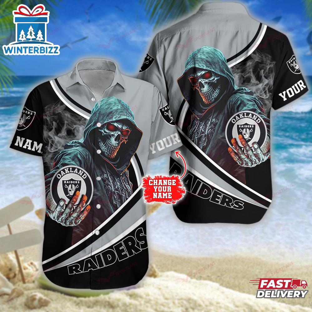 Custom Name Las Vegas Raiders NFL Football Team Hawaii Shirt Introducing our Hawaiian Shirt, the perfect blend of comfort and vibrant style. Crafted from lightweight, breathable fabric, it keeps you cool and relaxed. Featuring bold, tropical prints, this shirt adds a touch of paradise to any wardrobe. Ideal for beach outings or casual gatherings, our Hawaiian Shirt brings the spirit of the islands to your everyday look.