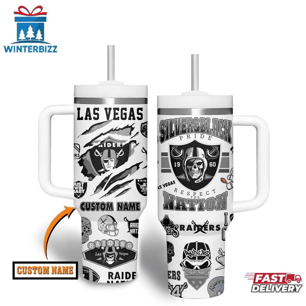 Product details: Custom Name Las Vegas Raiders NFL Tumbler 40Oz Handle Gift For Fans