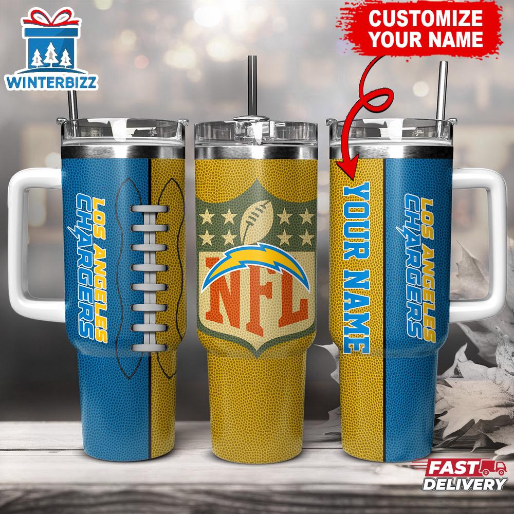 Photos Of Custom Name Los Angeles Chargers NFL Football Logo Tumbler 40oz With Handle