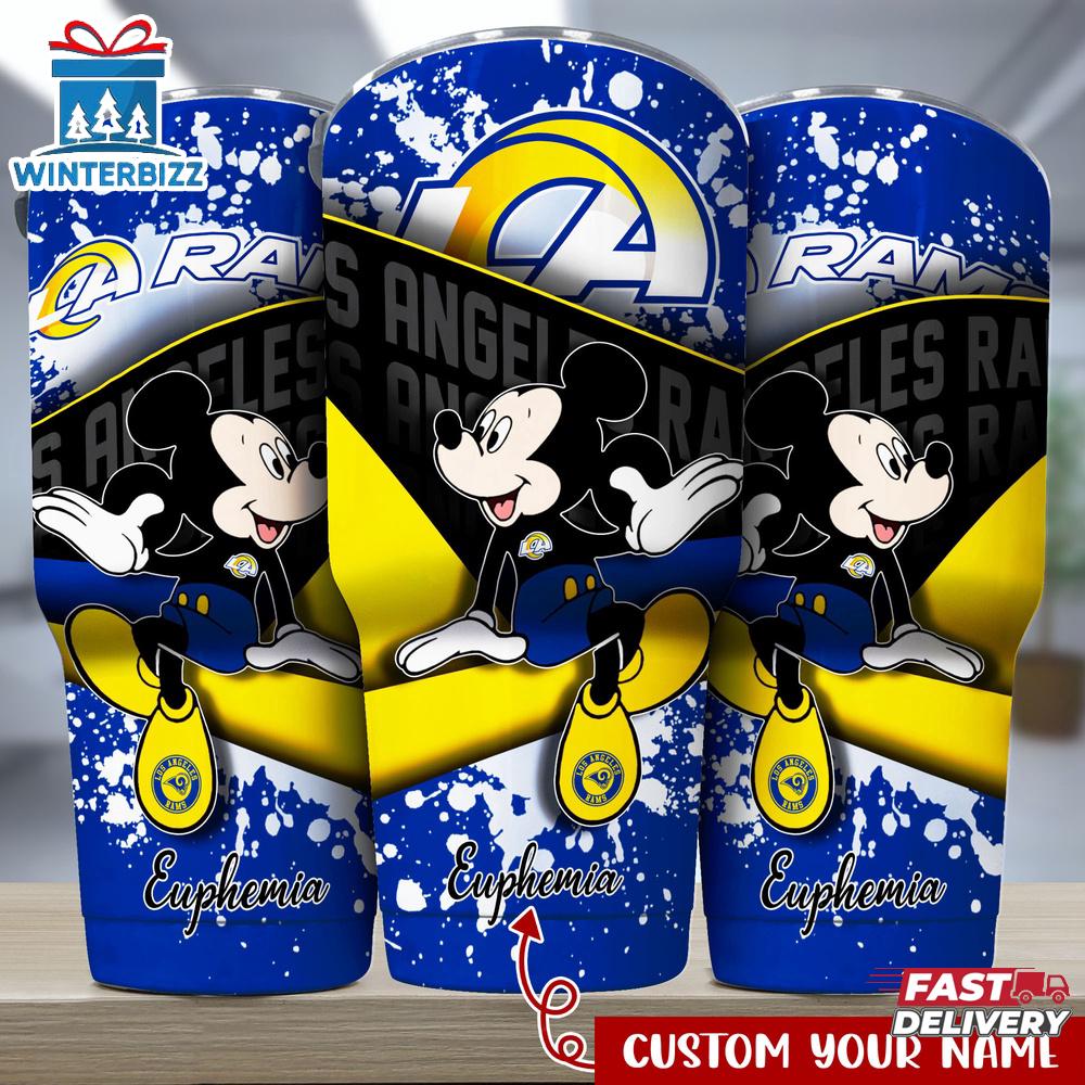 Custom Name Los Angeles Rams NFL Logo Mickey Mouse Tumbler For Fans