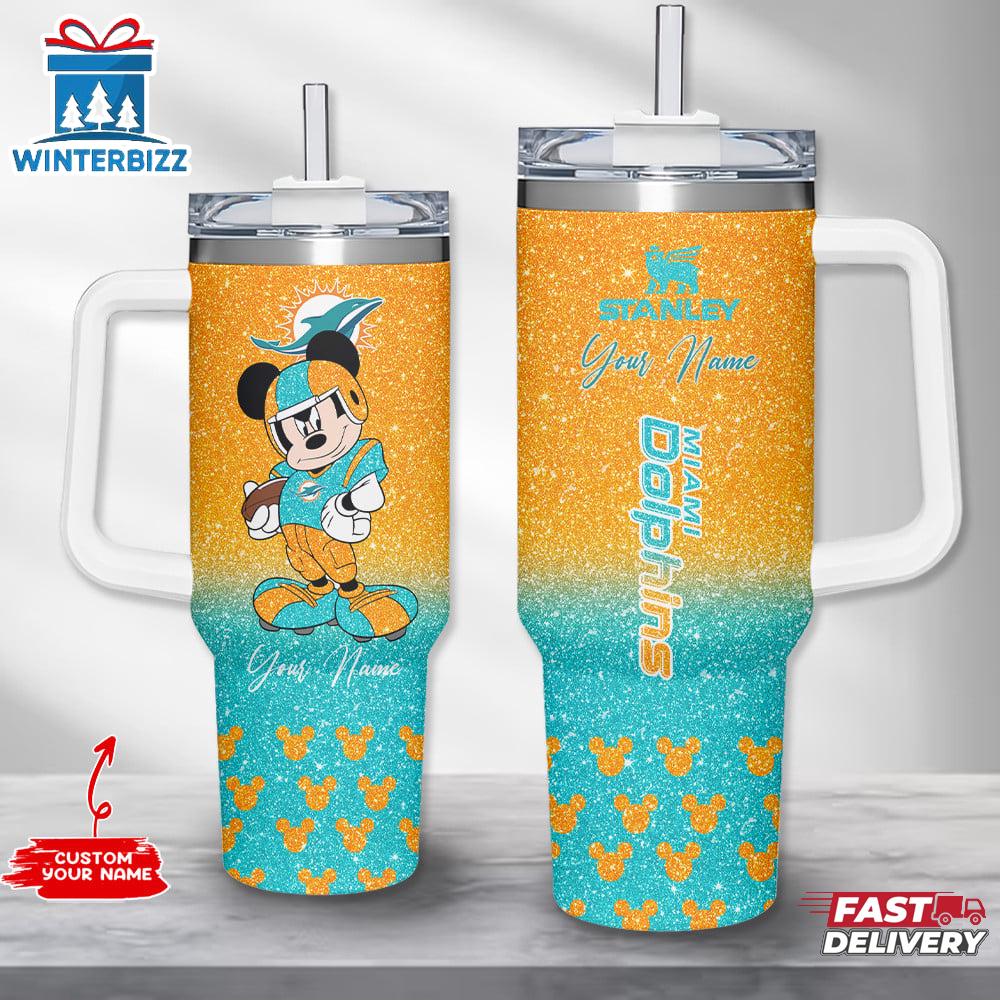 Product details: Custom Name Miami Dolphins Mickey Mouse Tumbler 40Oz With Handle