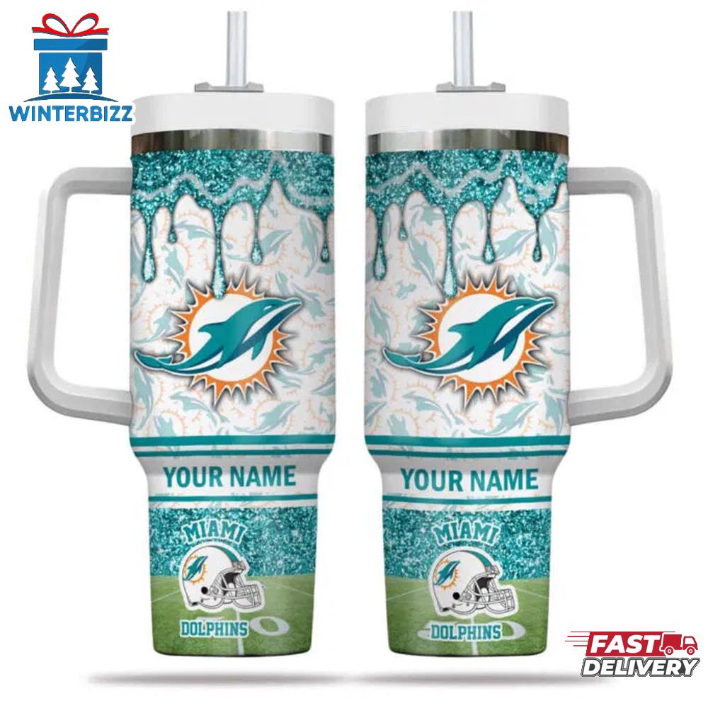 Product details: Custom Name Miami Dolphins NFL Team Tumbler 40Oz Handle