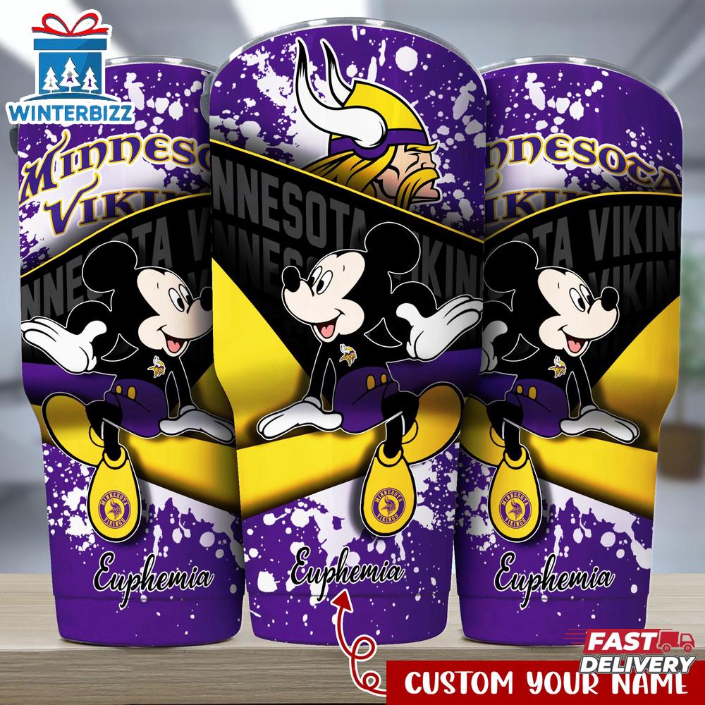 Photos Of Custom Name Minnesota Vikings NFL Logo Mickey Mouse Tumbler For Fans