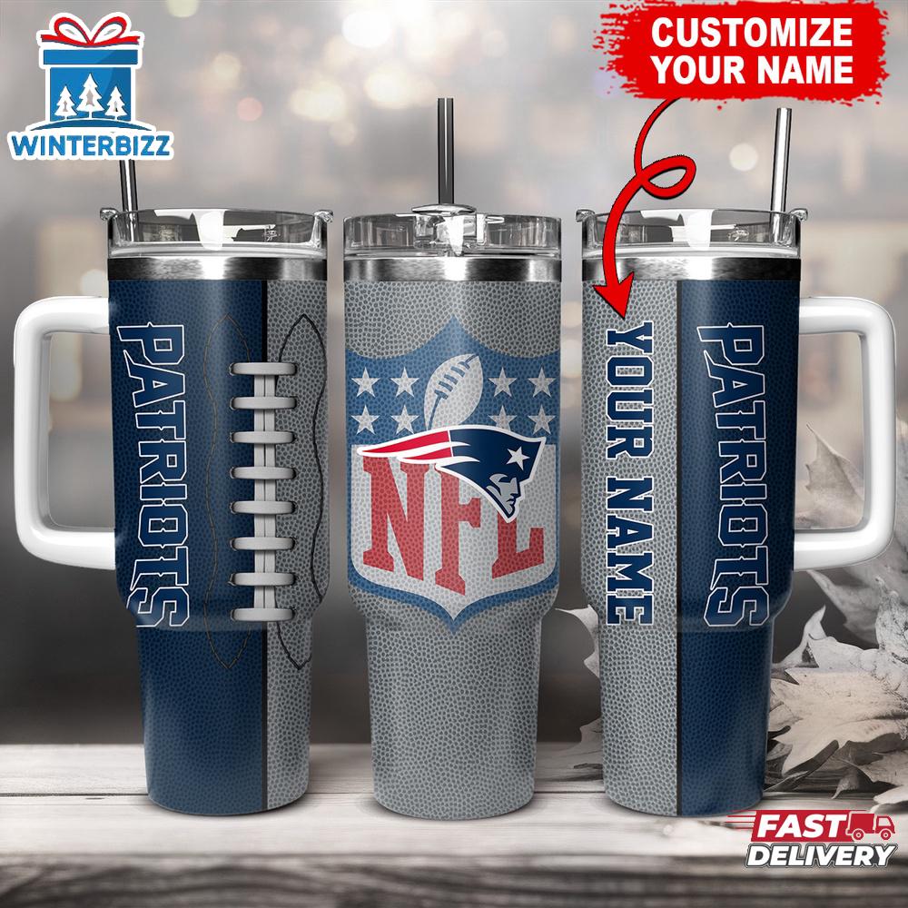 Photos Of Custom Name New England Patriots NFL Football Logo Tumbler 40oz With Handle