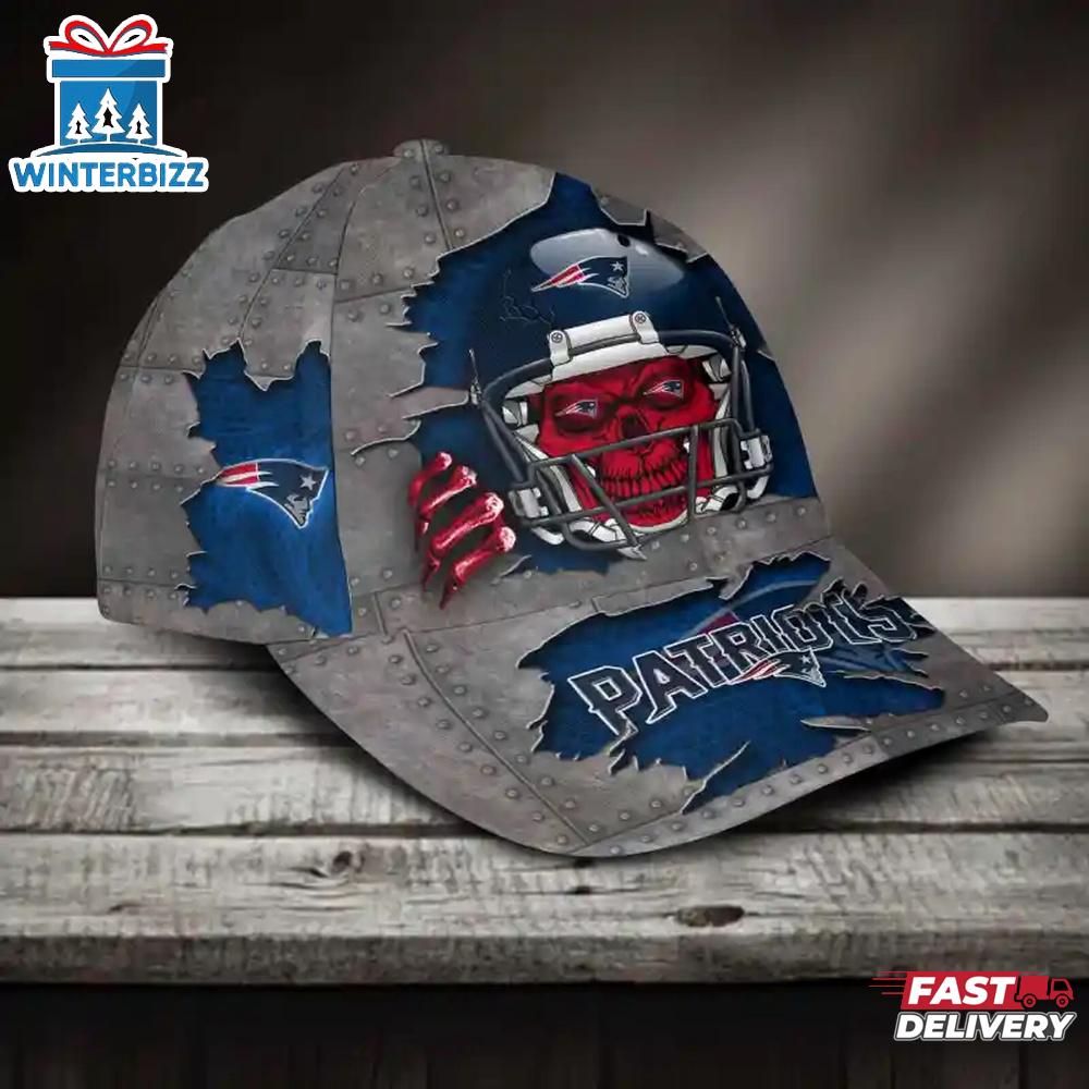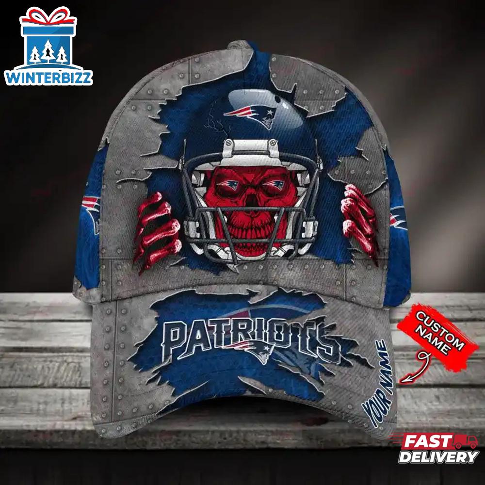 Custom Name New England Patriots NFL Football Team Skull Baseball Cap