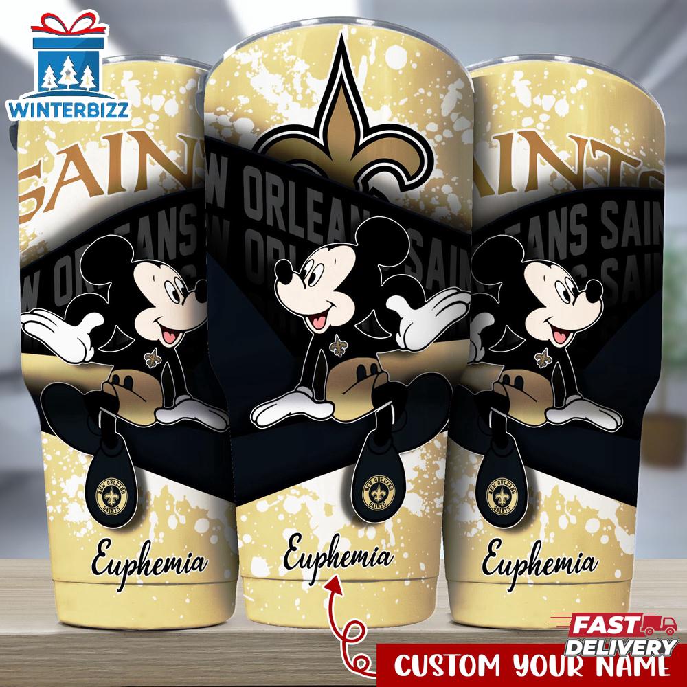 Photos Of Custom Name New Orleans Saints NFL Logo Mickey Mouse Tumbler For Fans