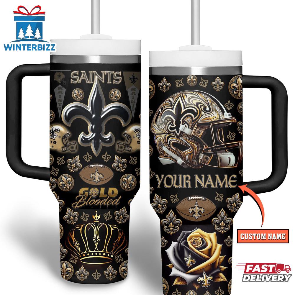 Photos Of Custom Name New Orleans Saints NFL Tumbler 40oz With Handle For Fans