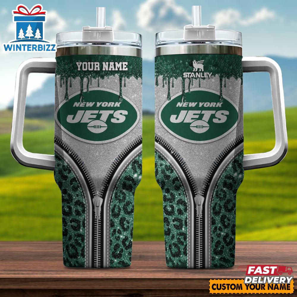 Photos Of Custom Name New York Jets Leopard Stainless Steel Tumbler 40Oz With Handle