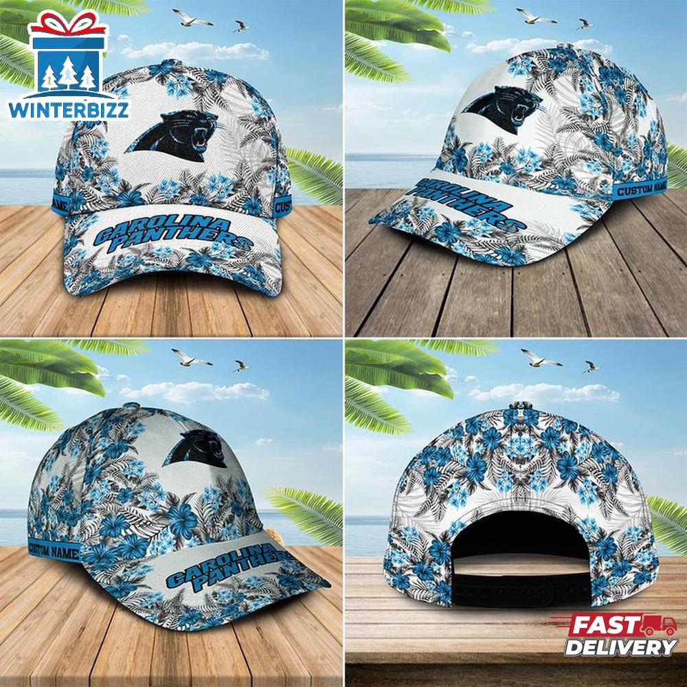 Custom Name NFL Carolina Panthers Hawaiian Pattern Baseball Cap