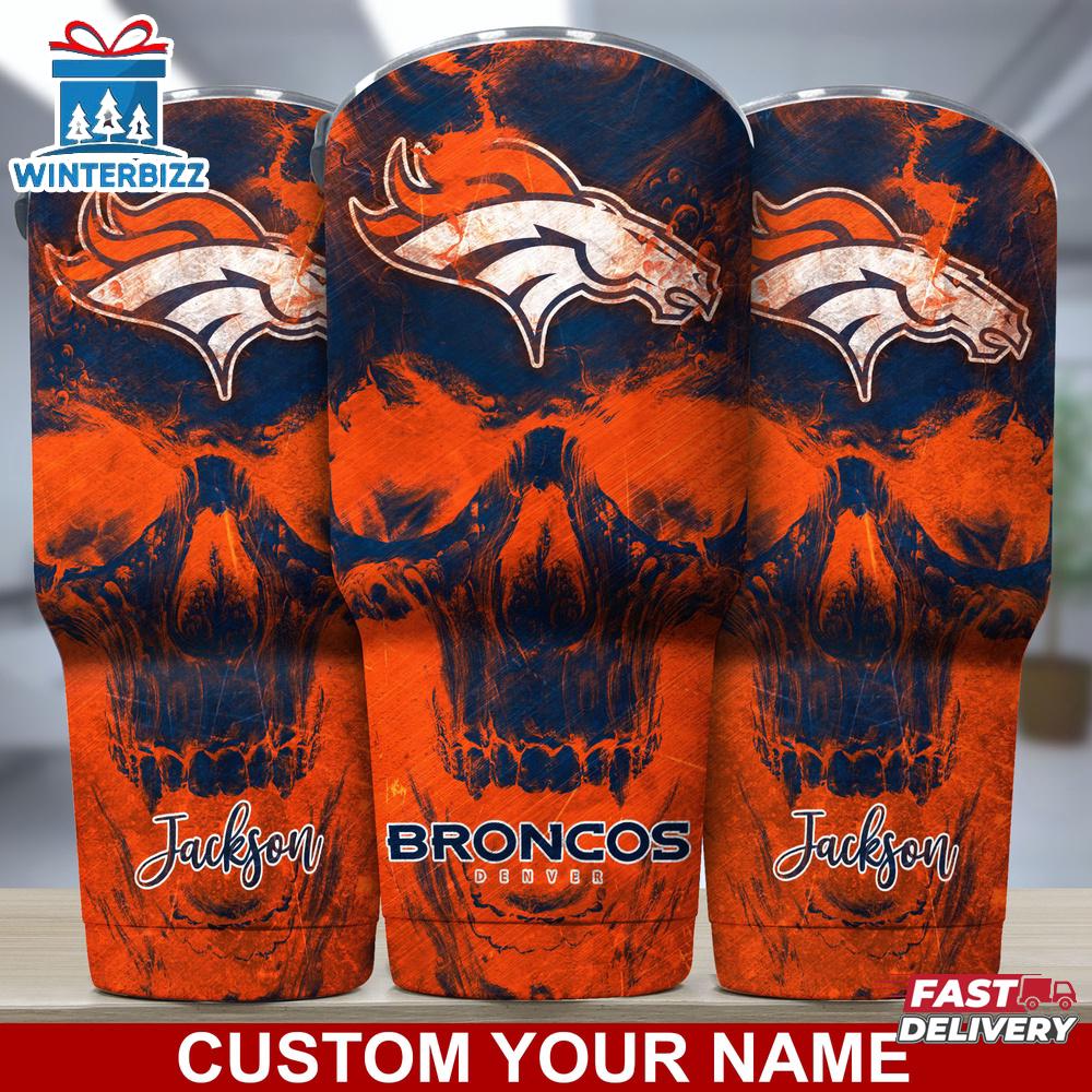 Photos Of Custom Name NFL Denver Broncos NFL Skull Tumbler For Sports Fan
