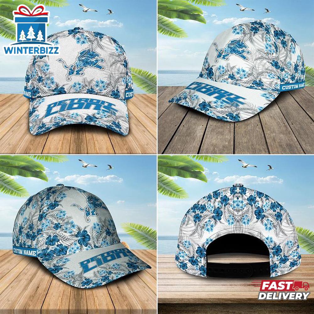 Photos Of Custom Name NFL Detroit Lions Hawaiian Pattern Baseball Cap