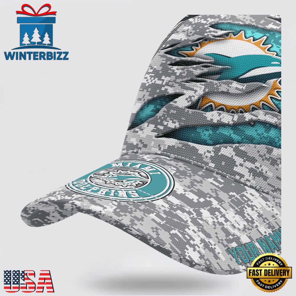Custom Name NFL Dolphins Camo US New Design Classic Baseball Cap
