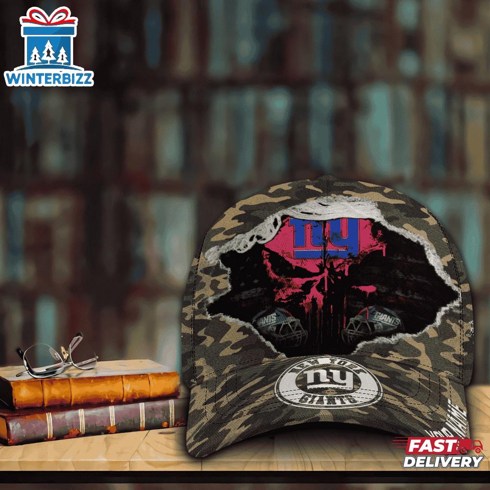 Custom Name NFL Giants Punisher Skull Baseball Cap