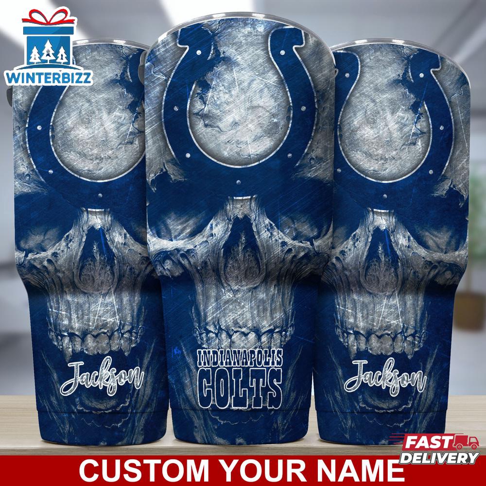 Photos Of Custom Name NFL Indianapolis Colts NFL Skull Tumbler For Sports Fan
