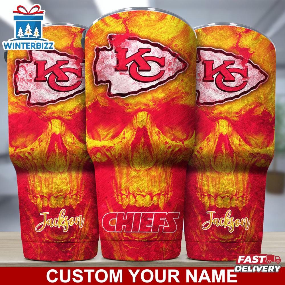 Custom Name NFL Kansas City Chiefs NFL Skull Tumbler For Sports Fan