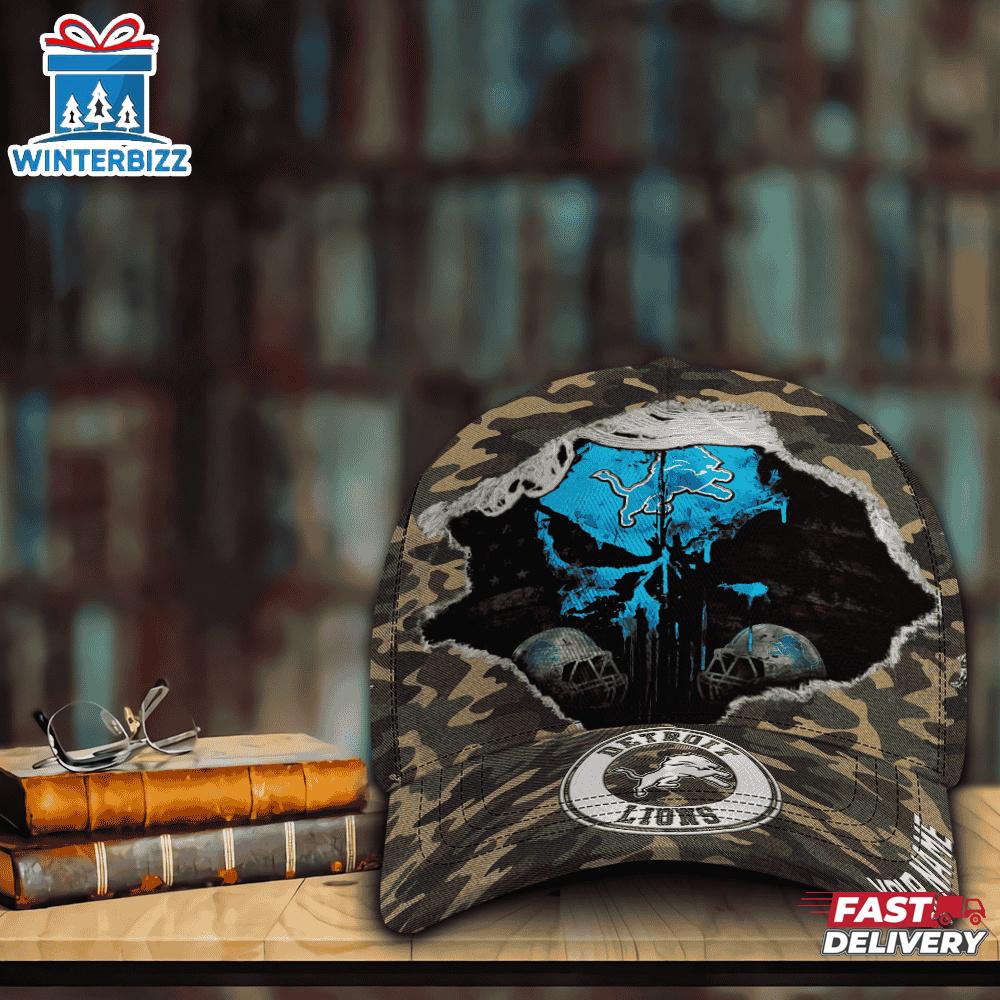 Photos Of Custom Name NFL Lions Punisher Skull Baseball Cap