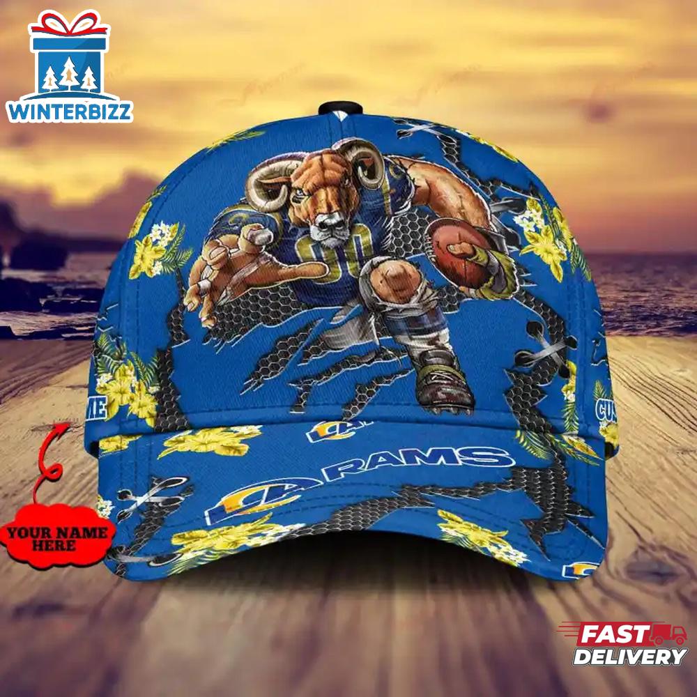 Custom Name NFL Los Angeles Rams Mascot Football Baseball Cap