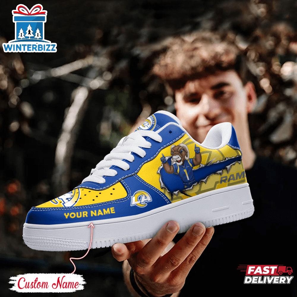 Photos Of Custom Name NFL Los Angeles Rams Mascot Pattern Air Force 1 Shoes