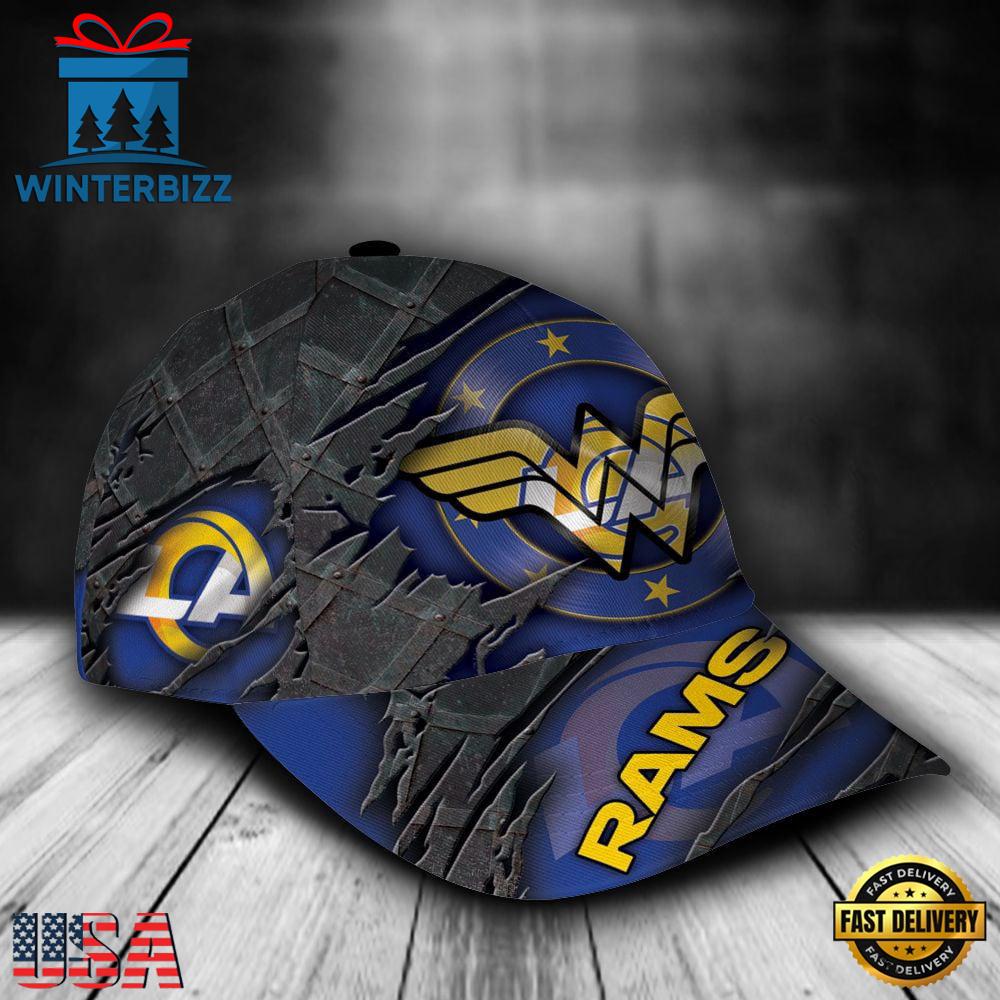 Photos Of Custom Name NFL Los Angeles Rams Wonder Woman Logo All Over Print – Blue 3D Classic Cap Hats