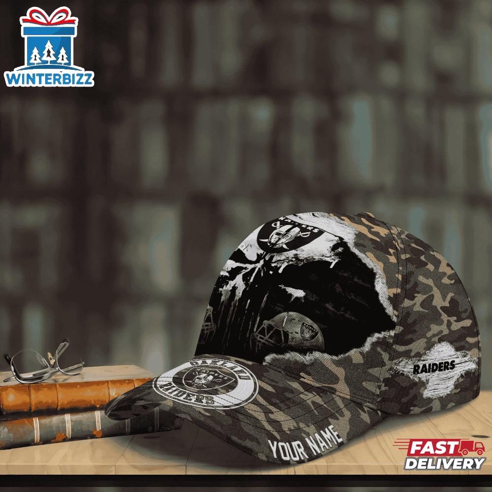 Photos Of Custom Name NFL Raiders Punisher Skull Baseball Cap