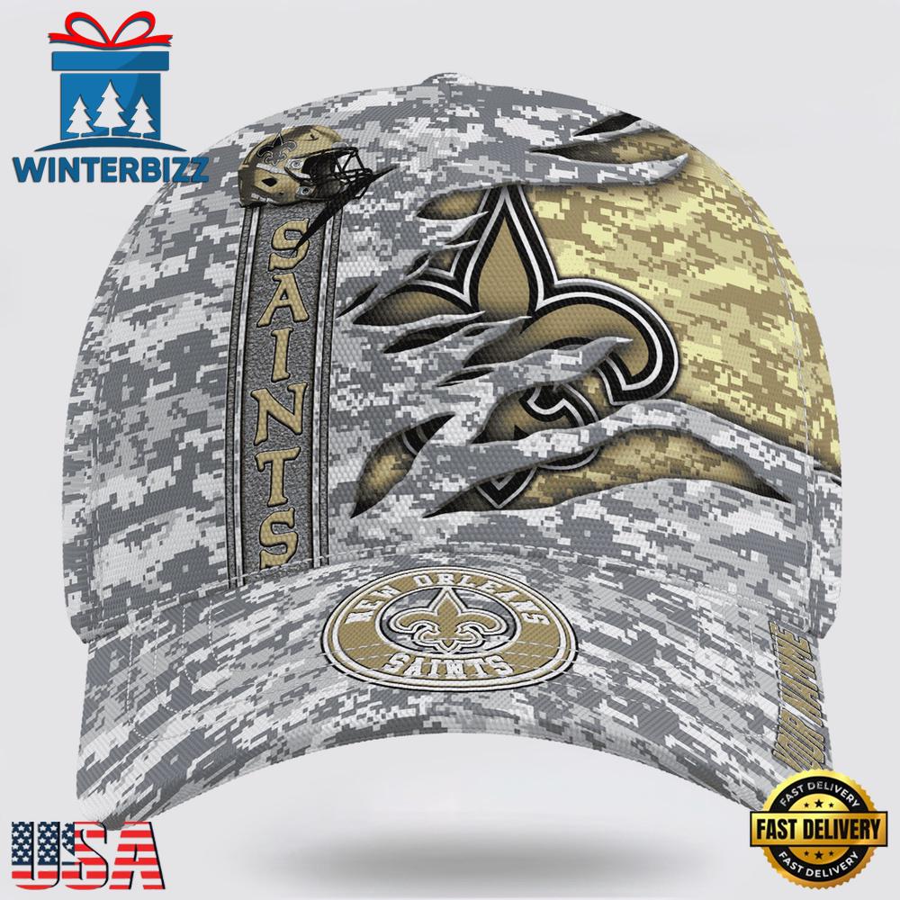 Custom Name NFL Saints Camo US New Design Classic Baseball Cap