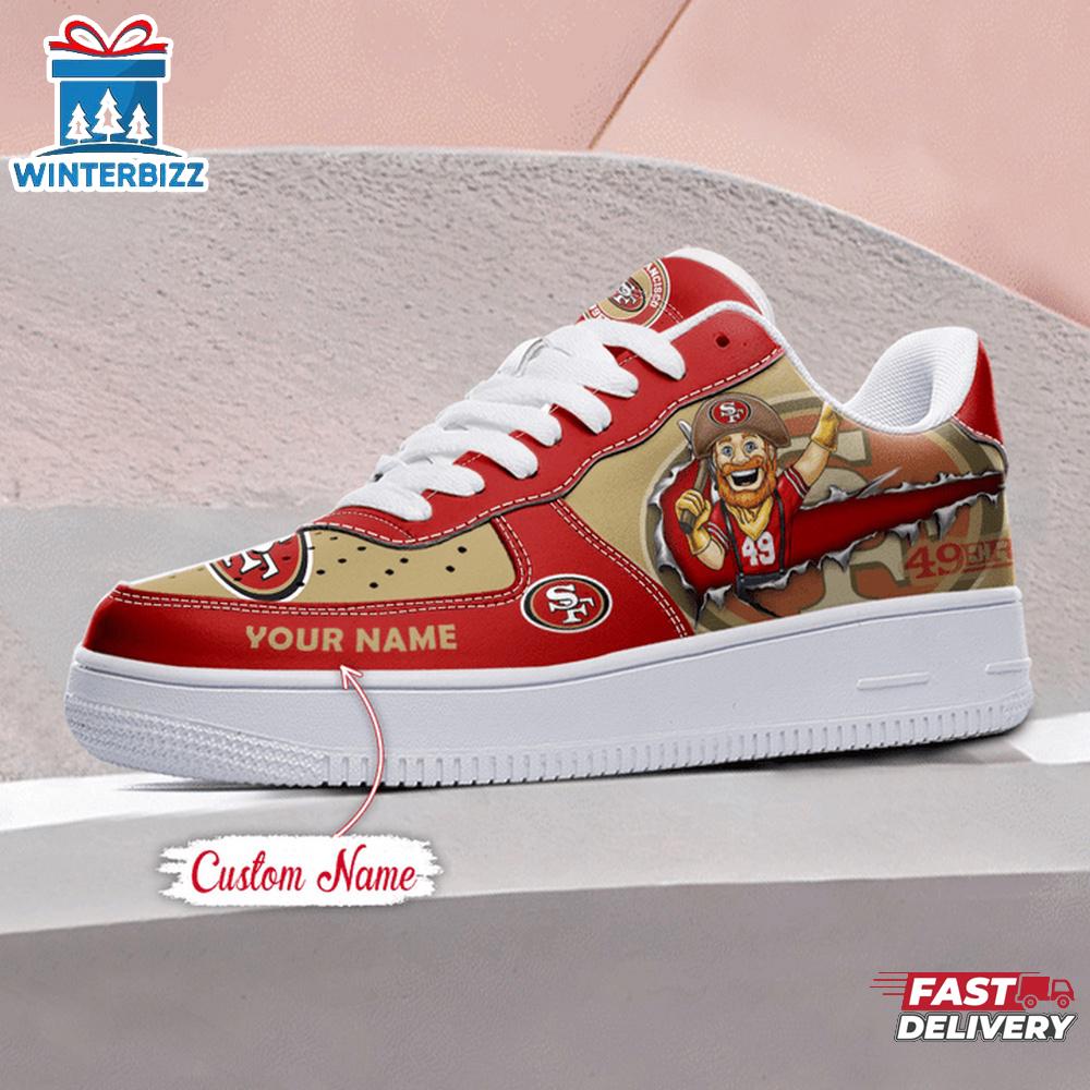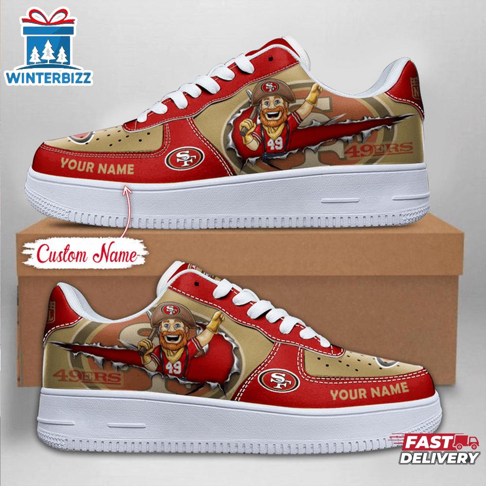 Photos Of Custom Name NFL San Francisco 49ers Mascot Pattern Air Force 1 Shoes