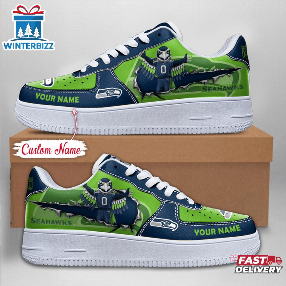 Photos Of Custom Name NFL Seattle Seahawks Mascot Pattern Air Force 1 Shoes