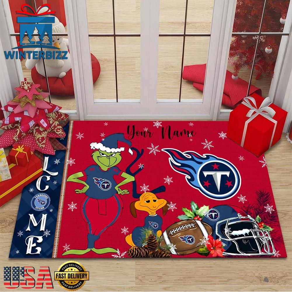 Custom Name NFL Tennessee Titans Grinch Christmas Welcome Football Doormat , Doormat Outdoor