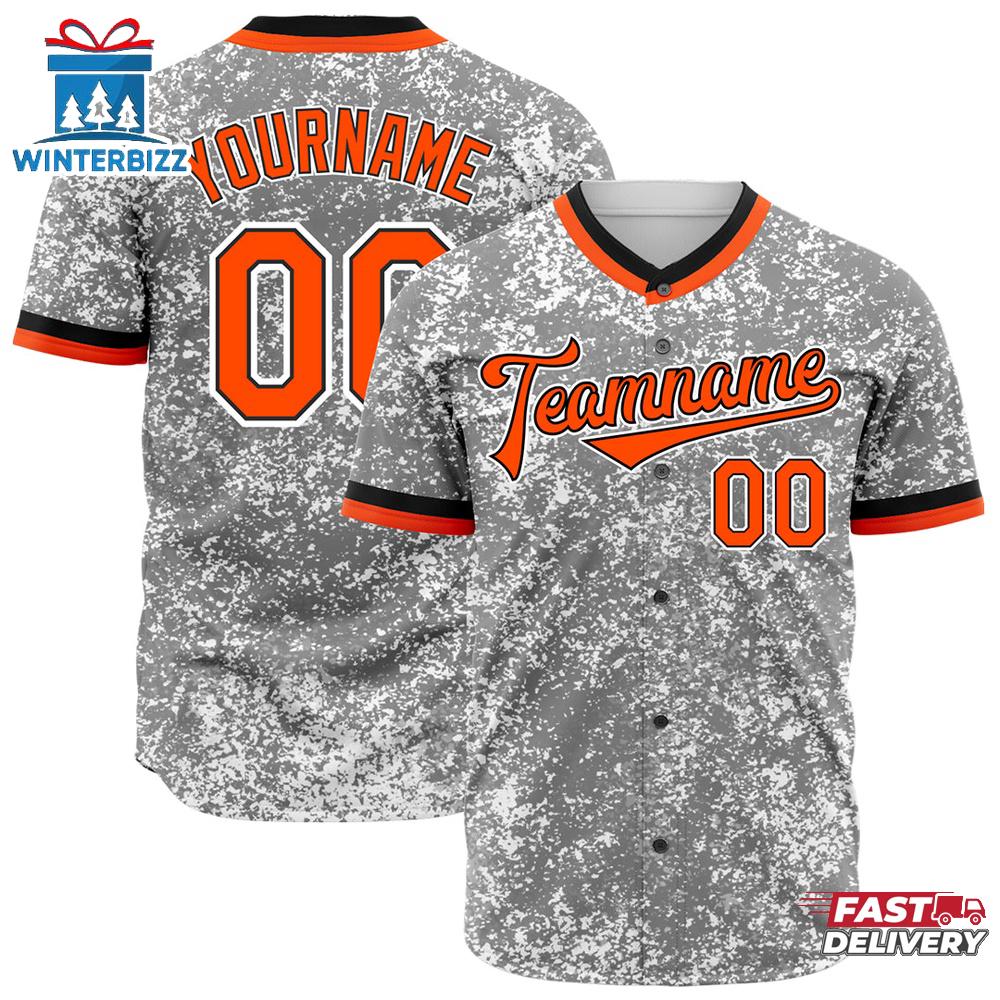 Custom Name Number And Team Arctic Camouflage Orange Front Baseball Jersey