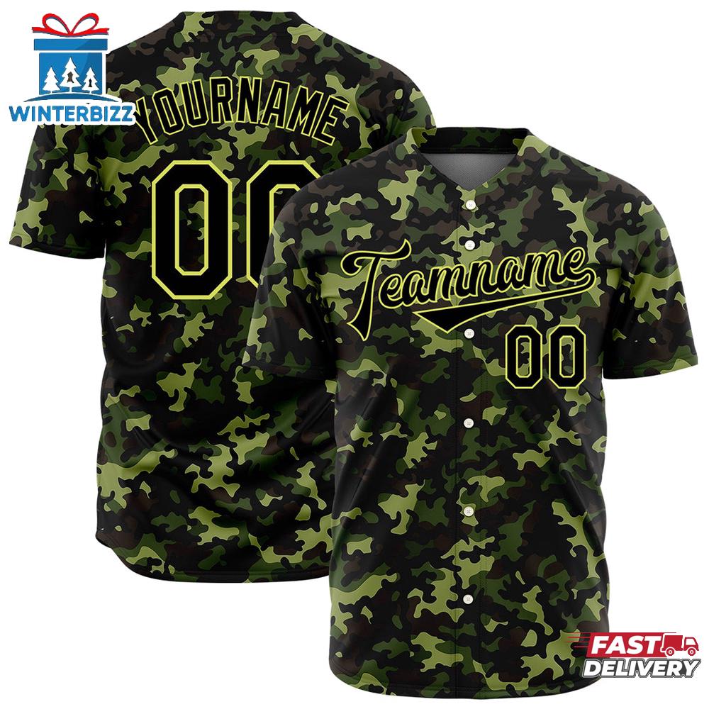 - Custom Name Number And Team Army Green Camo Pattern Baseball Jersey