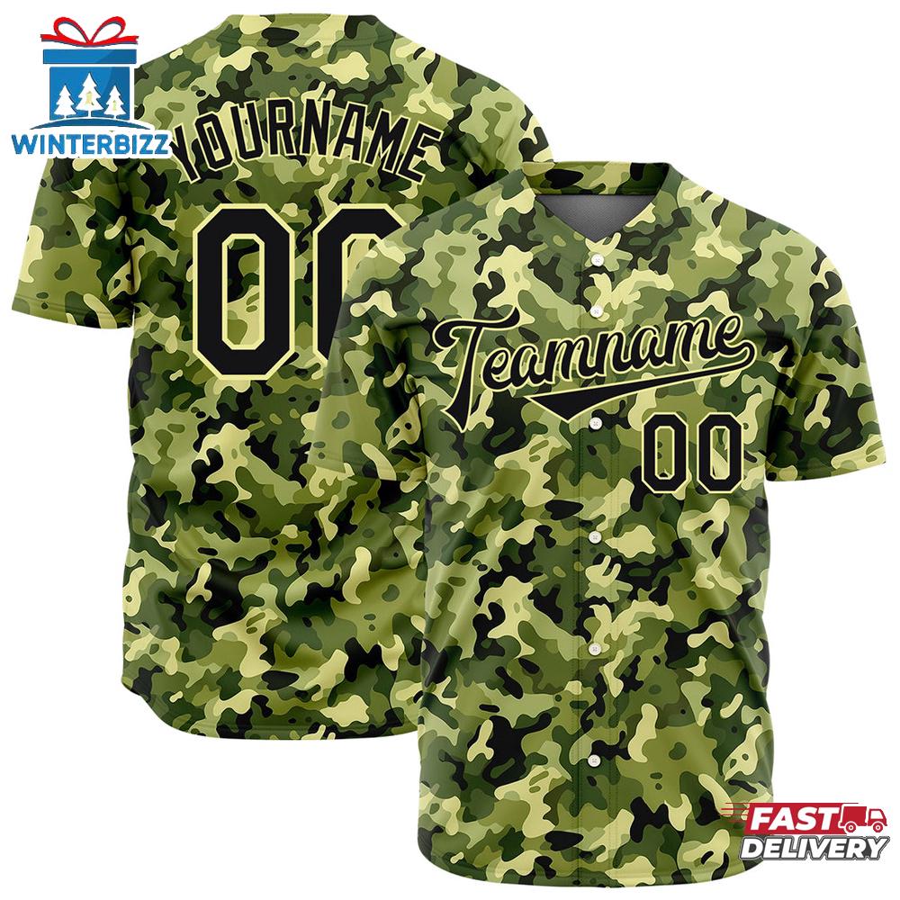 Custom Name Number And Team Army Green Camo Pattern Baseball Jersey