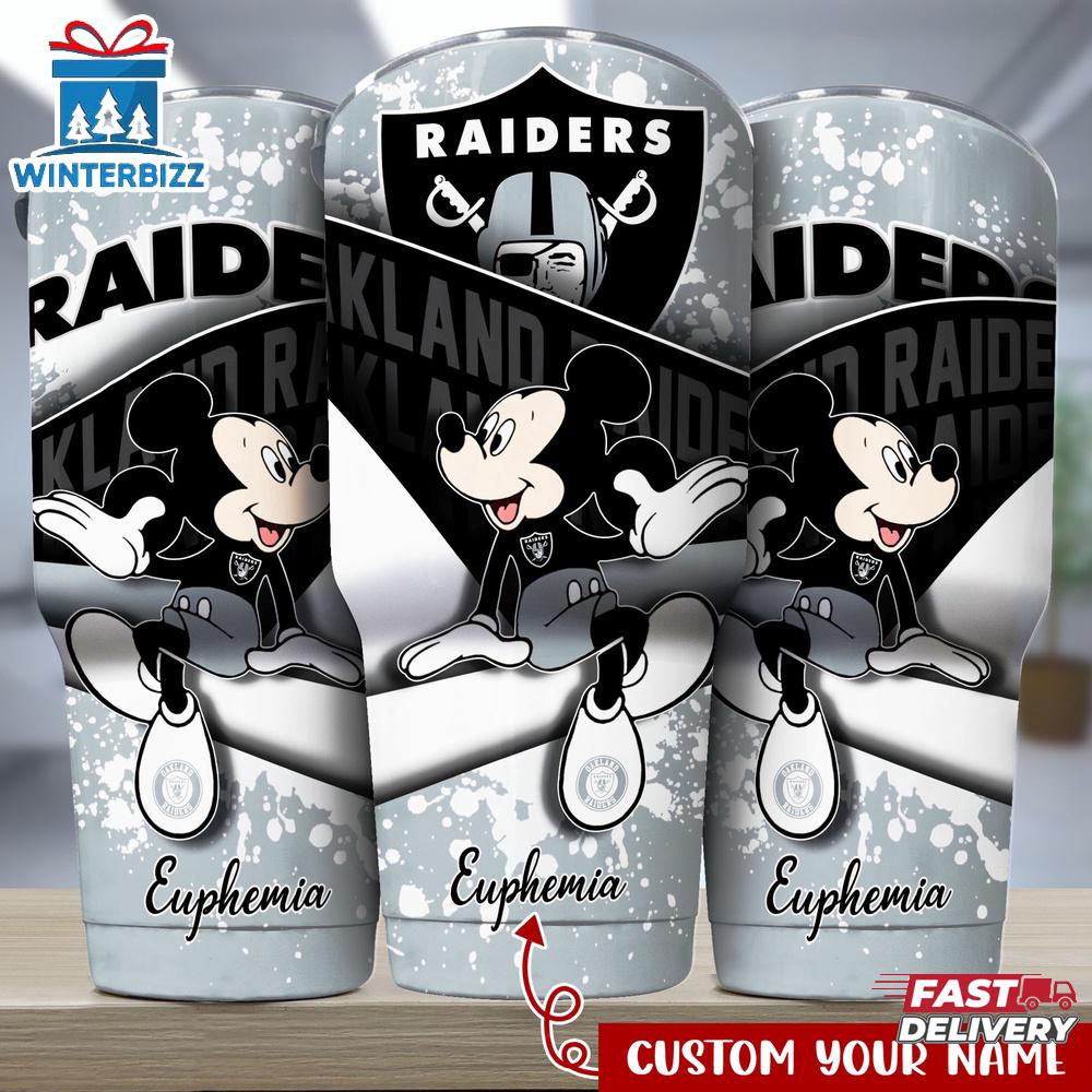 Photos Of Custom Name Oakland Raiders NFL Logo Mickey Mouse Tumbler For Fans