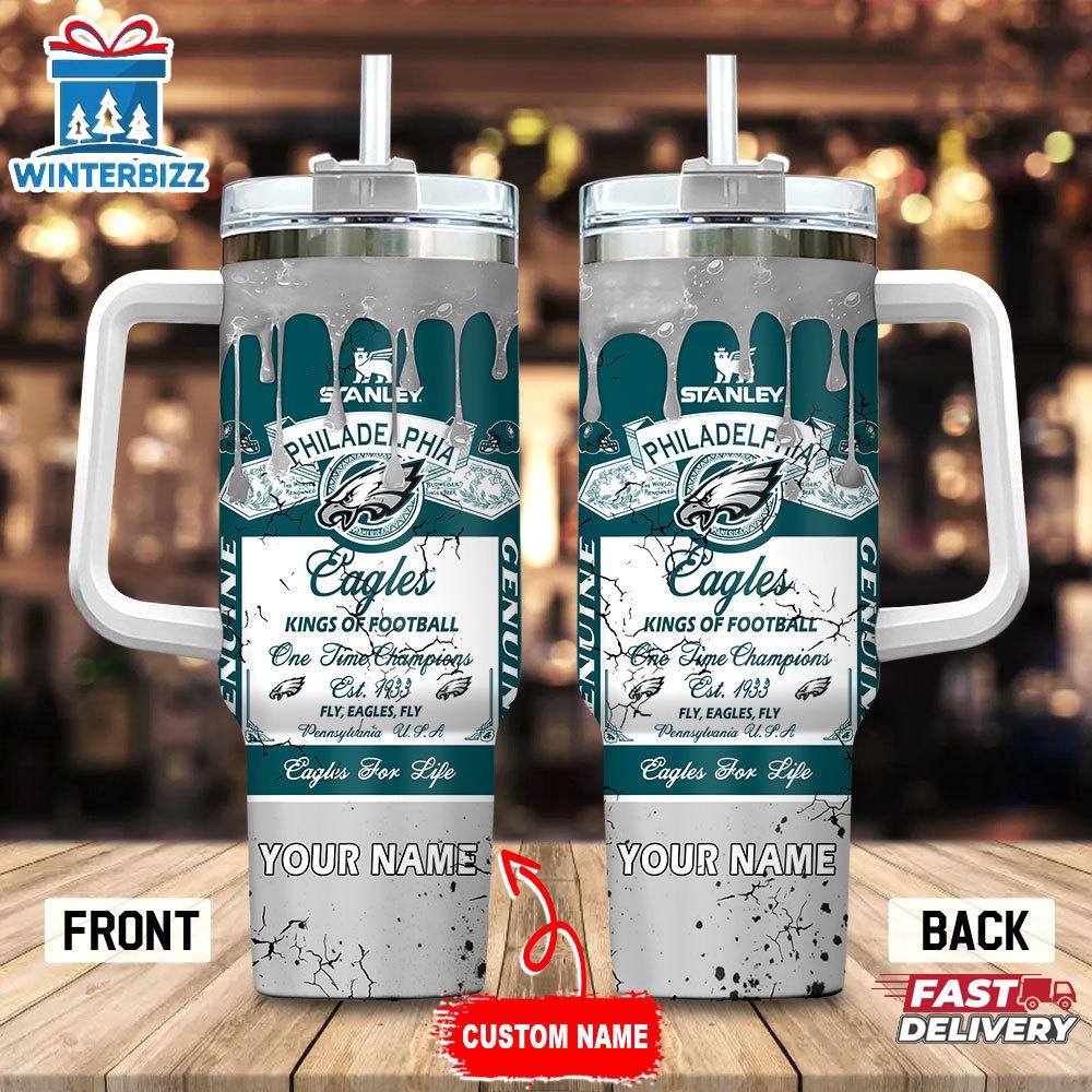 Photos Of Custom Name Philadelphia Eagles NFL Kings Of Football Stainless Steel Tumbler 40Oz With Handle
