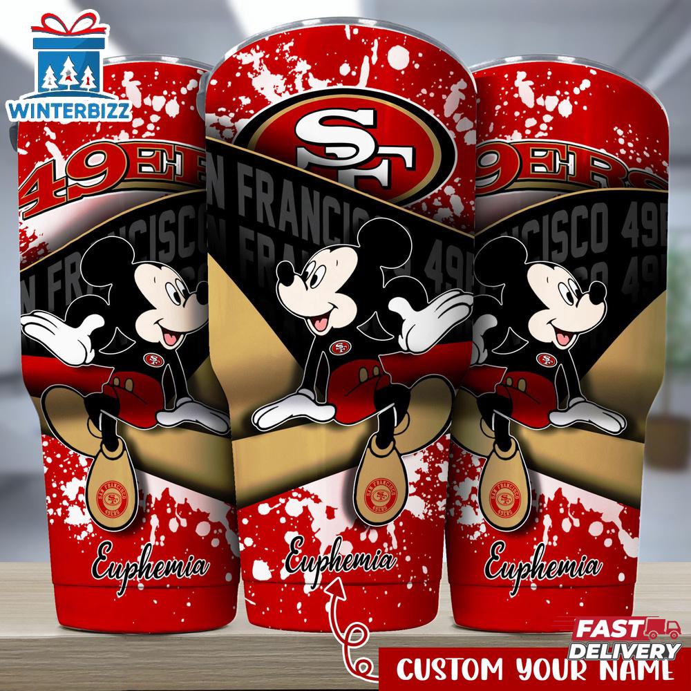 Custom Name San Francisco 49ers NFL Logo Mickey Mouse Tumbler For Fans