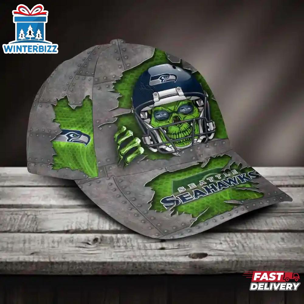 Custom Name Seattle Seahawks NFL Football Team Skull Baseball Cap