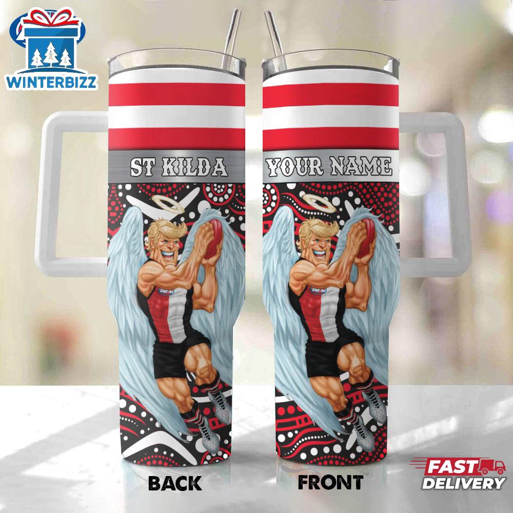 Product details: Custom Name St Kilda AFL Mascot Tumbler 40Oz Handle