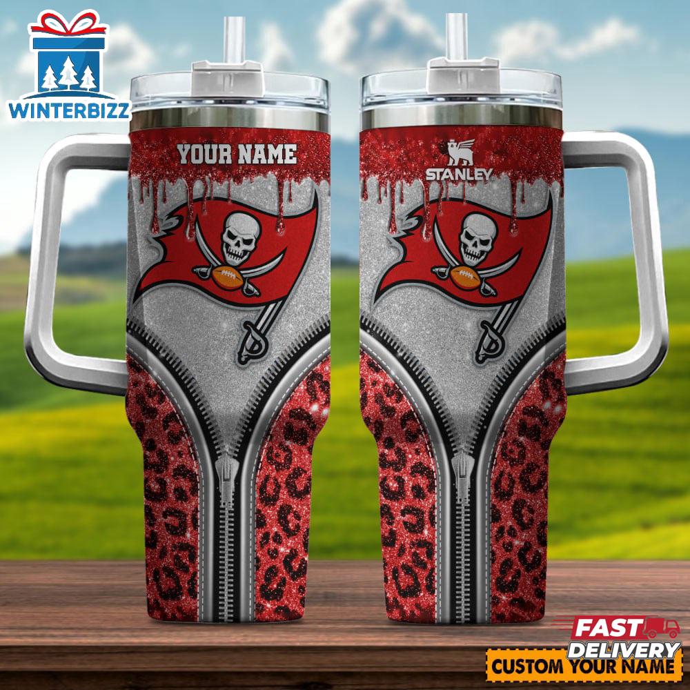 Photos Of Custom Name Tampa Bay Buccaneers Leopard Stainless Steel Tumbler 40Oz With Handle