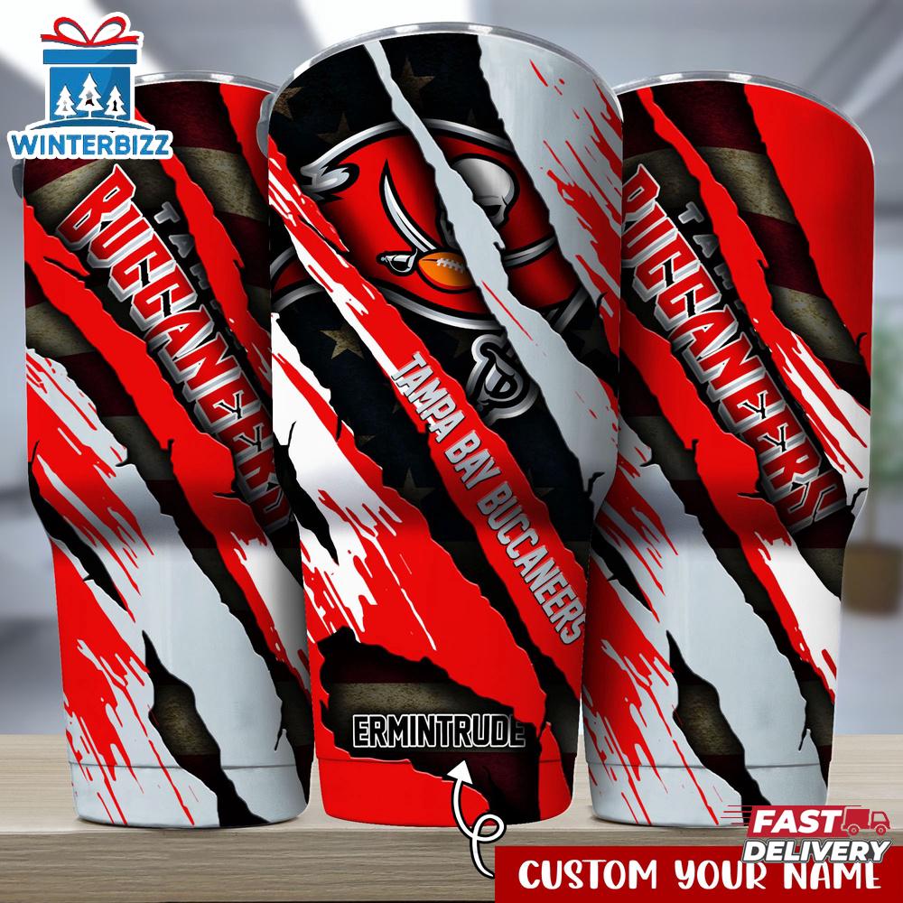 Photos Of Custom Name Tampa Bay Buccaneers NFL Logo Team Tumbler Gift For Fans