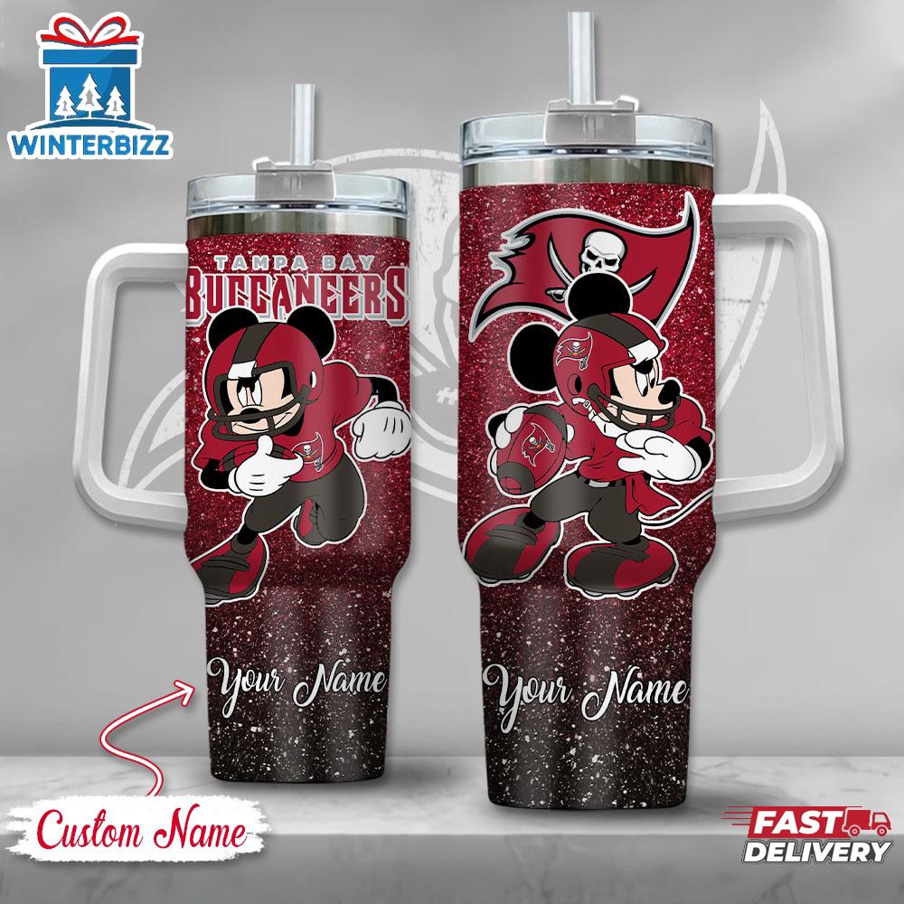 Custom Name Tampa Bay Buccaneers NFL Mickey Mouse Stainless Steel Tumbler 40Oz With Handle