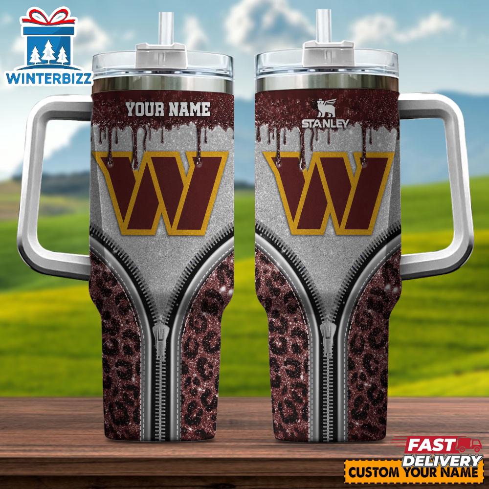 Photos Of Custom Name Washington Commanders Leopard Stainless Steel Tumbler 40Oz With Handle