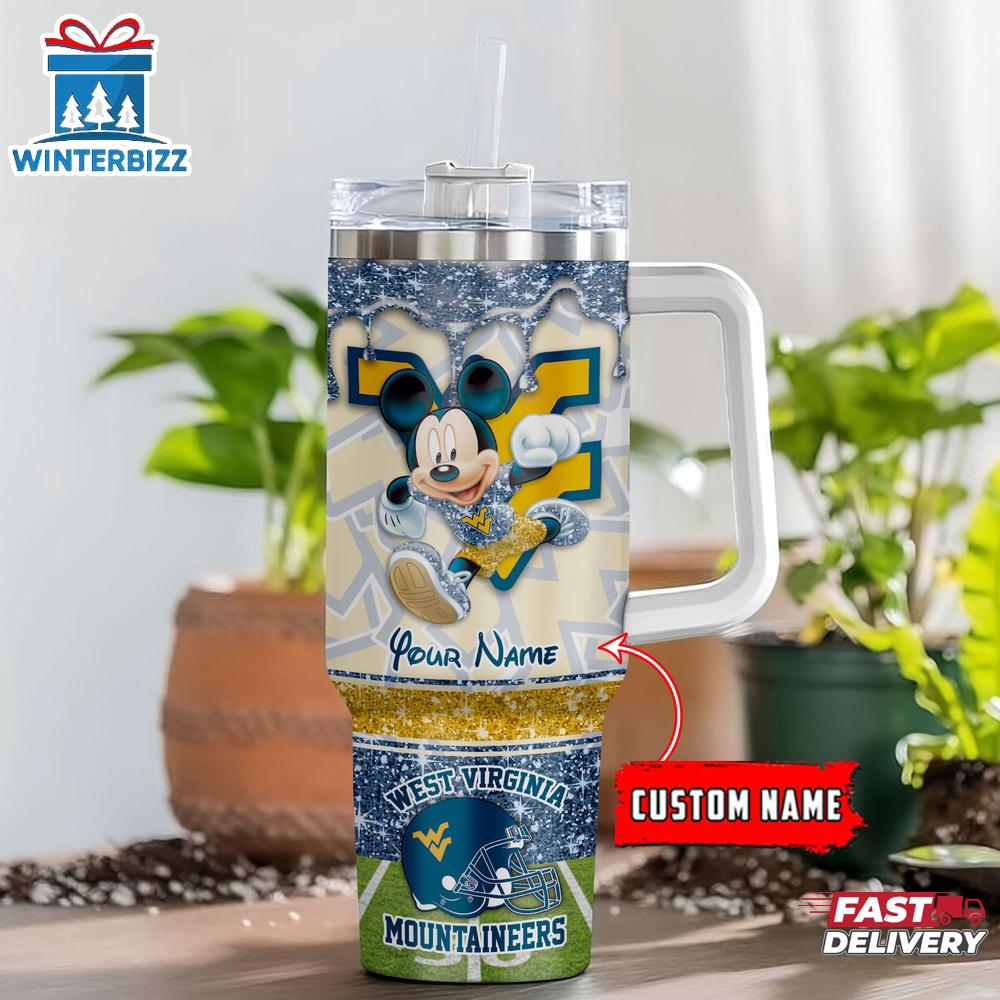 Product details: Custom Name West Virginia Mountaineers NCAA Mickey Mouse Tumbler 40Oz Handle