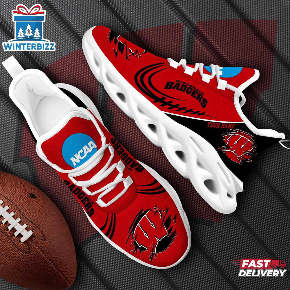 Custom Name Wisconsin Badgers NCAA Team Sport Max Soul Shoes