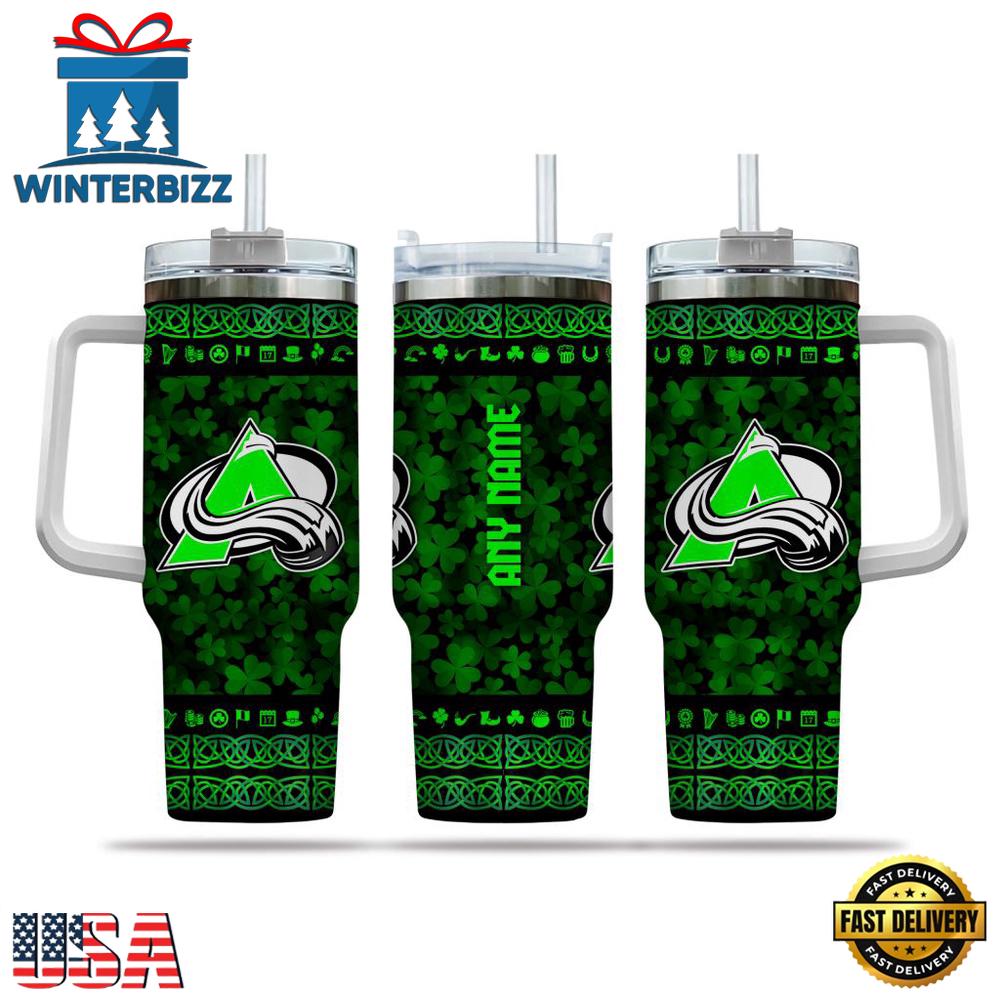 Customized NHL Colorado Avalanche Happy St. Patrick’s Day Stainless Steel Tumbler 40 Oz With Handle