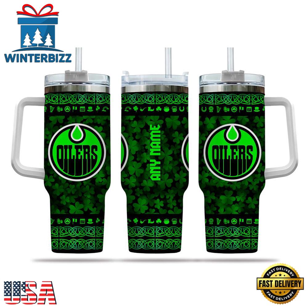 Customized NHL Edmonton Oilers Happy St. Patrick’s Day Stainless Steel Tumbler 40 Oz With Handle