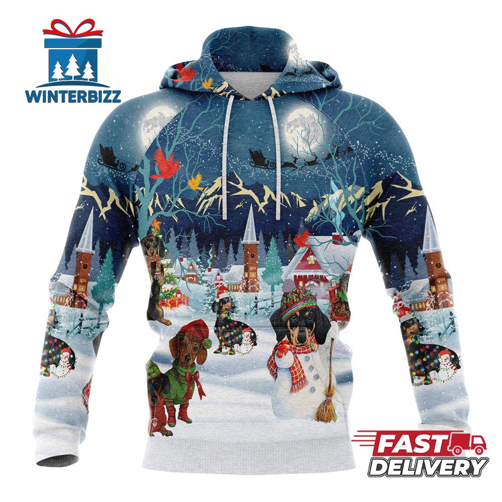 Dachshund Christmas Nightchristmas Hoodie All Over Print The 3D Shirt is a fashion statement that goes beyond the ordinary. Using advanced printing technology, it brings designs to life with depth and vividness. Crafted from high-quality materials, it offers comfort and durability. The three-dimensional graphics create a captivating effect that’s perfect for casual wear or making a bold statement. Whether you’re expressing your fandom or showcasing your unique taste, the 3D Shirt is a wearable work of art that sets you apart from the crowd.