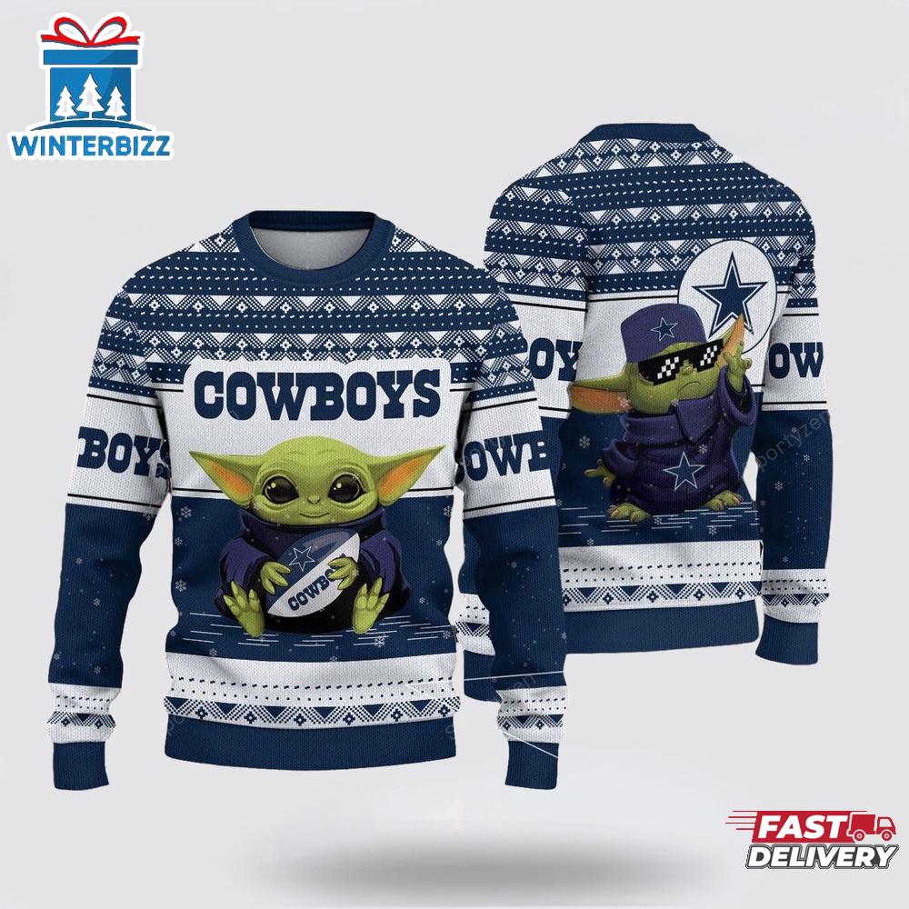 Dallas Cowboys Baby Yoda Ugly Christmas Sweater Shirt is a Christmas sweater with funny, humorous, and quirky patterns. It will be a meaningful gift for you to show your love and care for your loved ones.